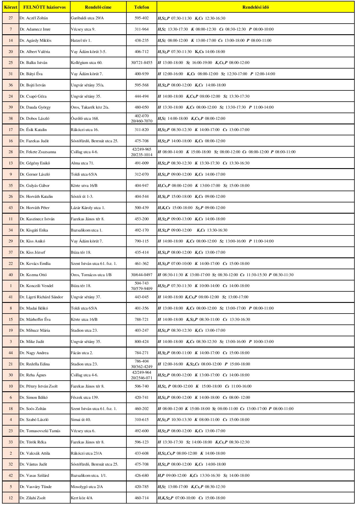 150 | Sörte utca | 4. | Dr. Szabó László | 4400 Nyíregyháza, Simai út 40. |